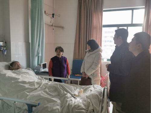 随后,唐洁一行来到安徽针灸医院,看望住院治疗的退休党员教师季亚平老师,向他送去了新春的祝福。党政班子成员仔细询问了季老的住院治疗情况,并向常年卧床的季老简要通报了学院近一年来的发展情况,并勉励季老养好身体,积极接受治疗。