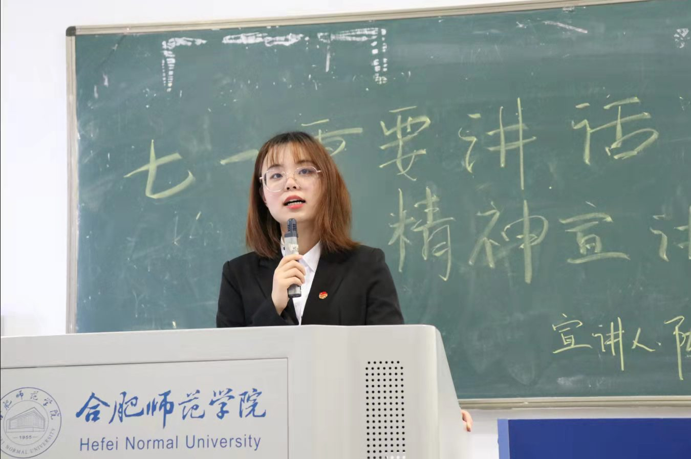 为深入学习贯彻习近平总书记“七一”重要讲话精神,推动党史学习教育走深走实,tyc5997太阳集团于10月27日在锦绣校区召开学习贯彻习近平总书记“七一”重要讲话精神专题宣讲会。省委党史学习教育第十巡回指导组成员秦蕊、tyc5997太阳集团党委宣传部副部长赵波、tyc5997太阳集团团委副书记刁文彬、tyc5997太阳集团党委副书记吴震及物材学院200余名学生参会。会议由学院团委书记吴梦云主持,宣讲人为校青年学生宣讲团成员陈曦。