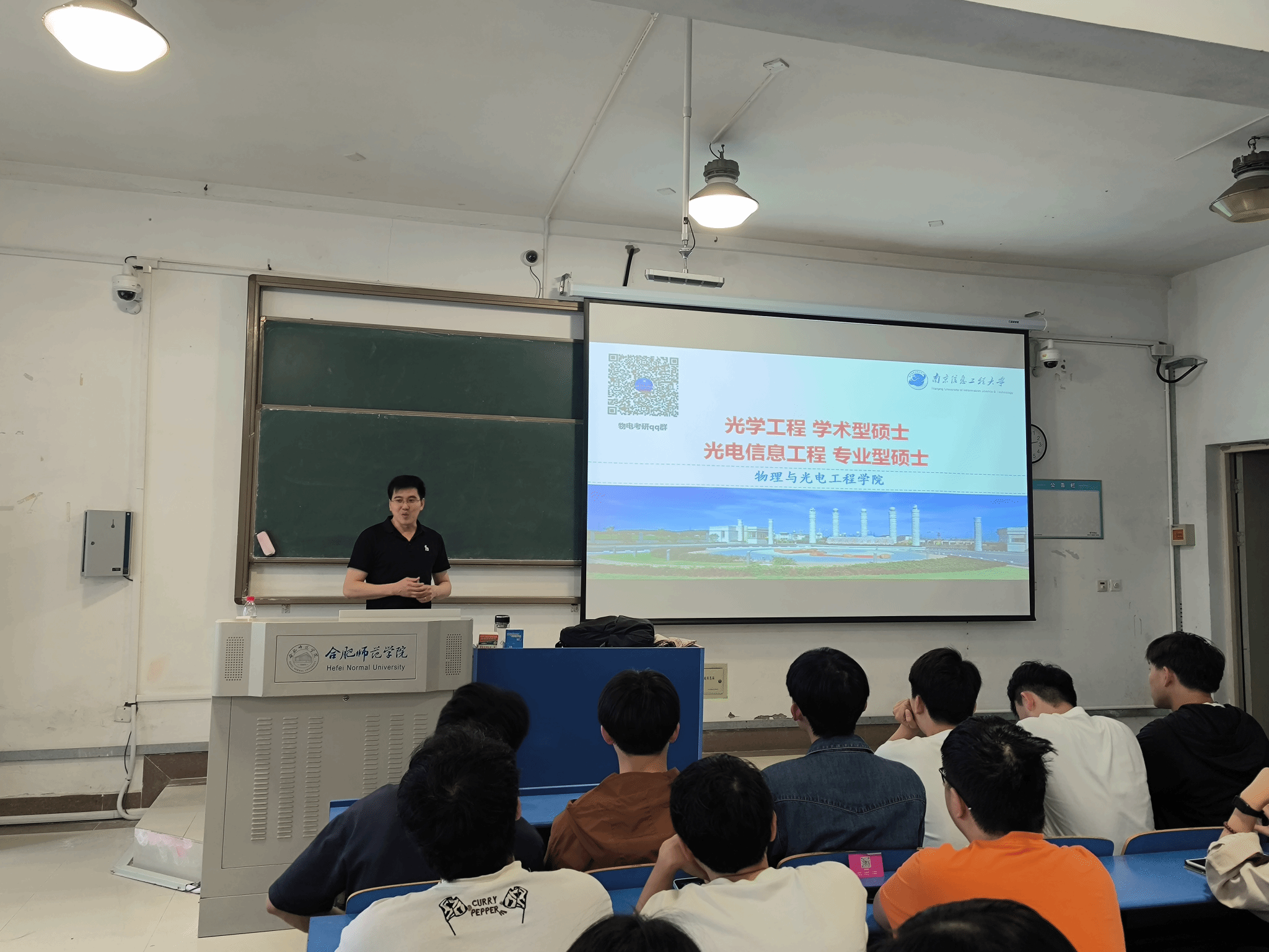 5月30日下午,tyc5997太阳集团在逸夫楼A104举办研究生报考系列宣讲会,邀请南京信息工程大学物理与光电工程学院副院长赖敏教授为考研学子作现场宣讲。2021级光电信息科学与工程专业学生全体参加,宣讲会由副院长余龙宝主持。