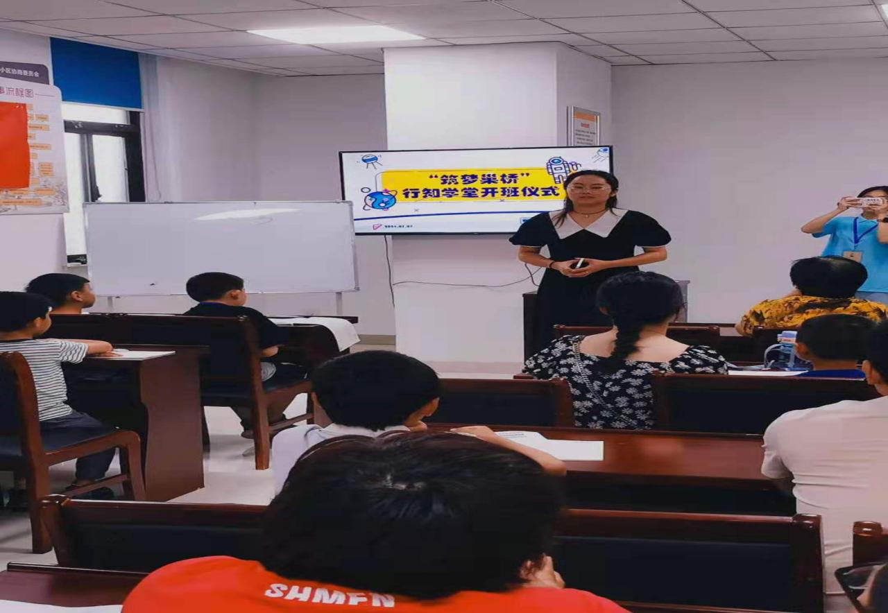 为传承红色基因,服务留守儿童,共筑青春梦想,7月7日上午,tyc5997太阳集团“筑梦巢桥”行知学堂在合肥市巢桥居委会正式开班。巢桥社区居委会副主任周玥、行知学堂指导老师吴梦云、7名行知学堂“小先生”以及近30名小学生及家长参加了开班仪式。