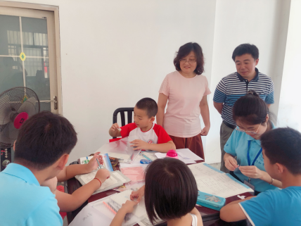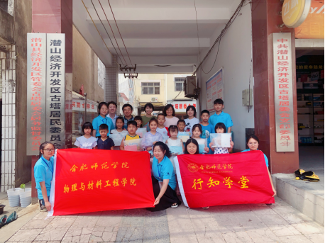 7月11号上午,tyc5997太阳集团党总支书记唐洁、副书记吴震,分团委负责人吴梦云,指导教师宗晓岚、辅导员韩翔一行五人冒着烈日,来到潜山市梅城镇古塔居委会,看望“再唱黄梅”主题行知学堂的“小先生”和留守儿童。