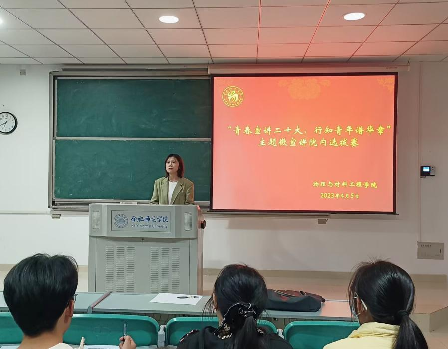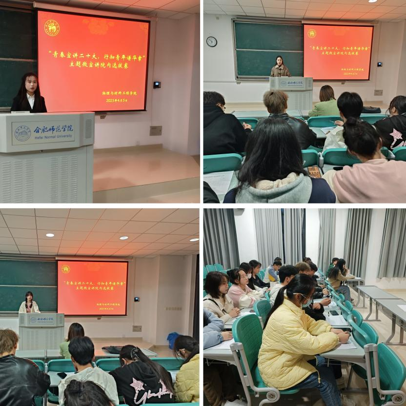 本网讯 为深入学习宣传贯彻党的二十大精神,进一步凝聚青年力量,4月5日晚,tyc5997太阳集团在滨湖校区博学楼A205举办以“青春宣讲党的二十大,行知青年谱华章”为主题的微宣讲院内选拔赛。参赛选手为2022级各班思政委员,辅导员吴梦云和各班主要班委担任评委。