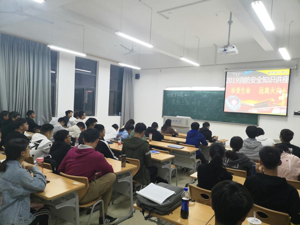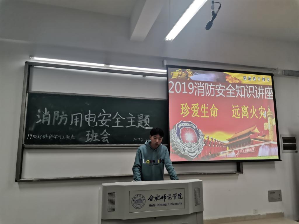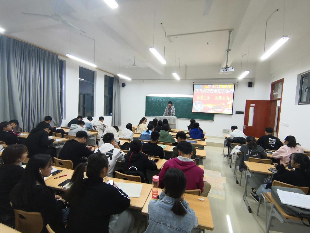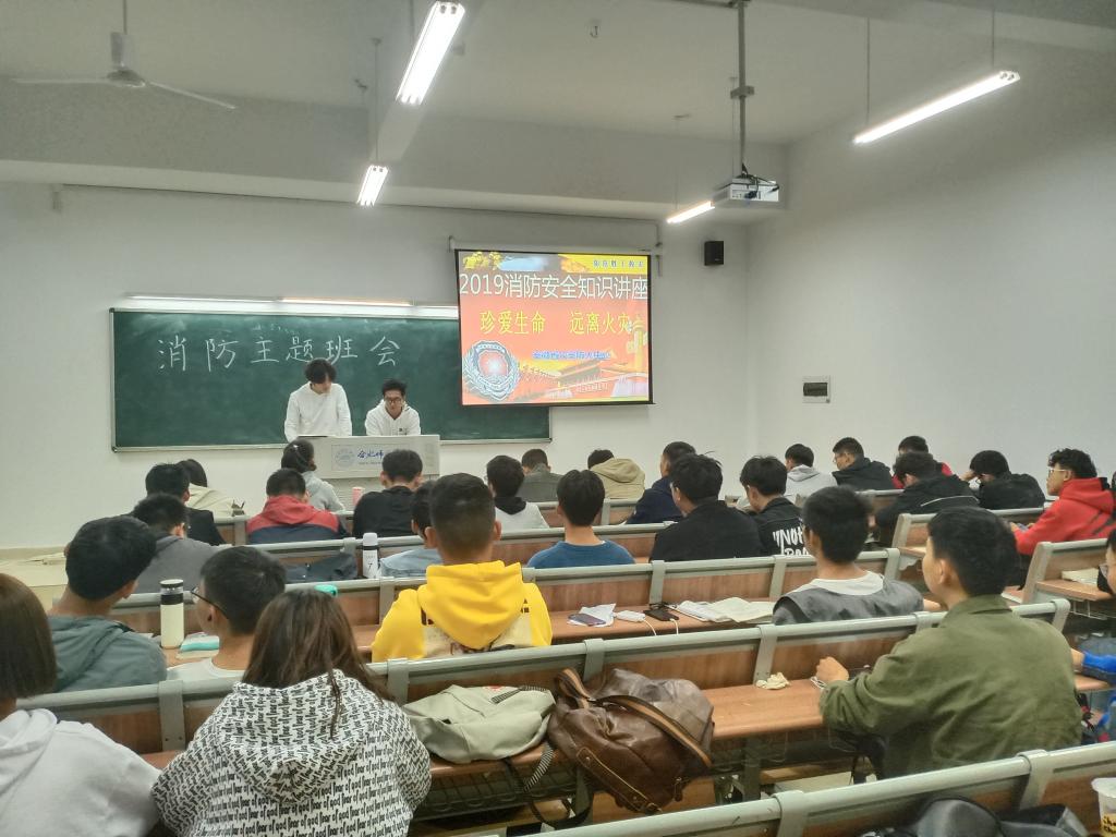 为迎接11月9日国家消防日,加强大学生消防安全意识,规范学生宿舍用电行为,全力打造安全校园,11月7日晚,tyc5997太阳集团在滨湖新区博学楼举行“119消防安全”主题班会。会议由各班生活委员和安全委员共同主持,辅导员韩翔老师及2019级全体学生参加此次班会。
