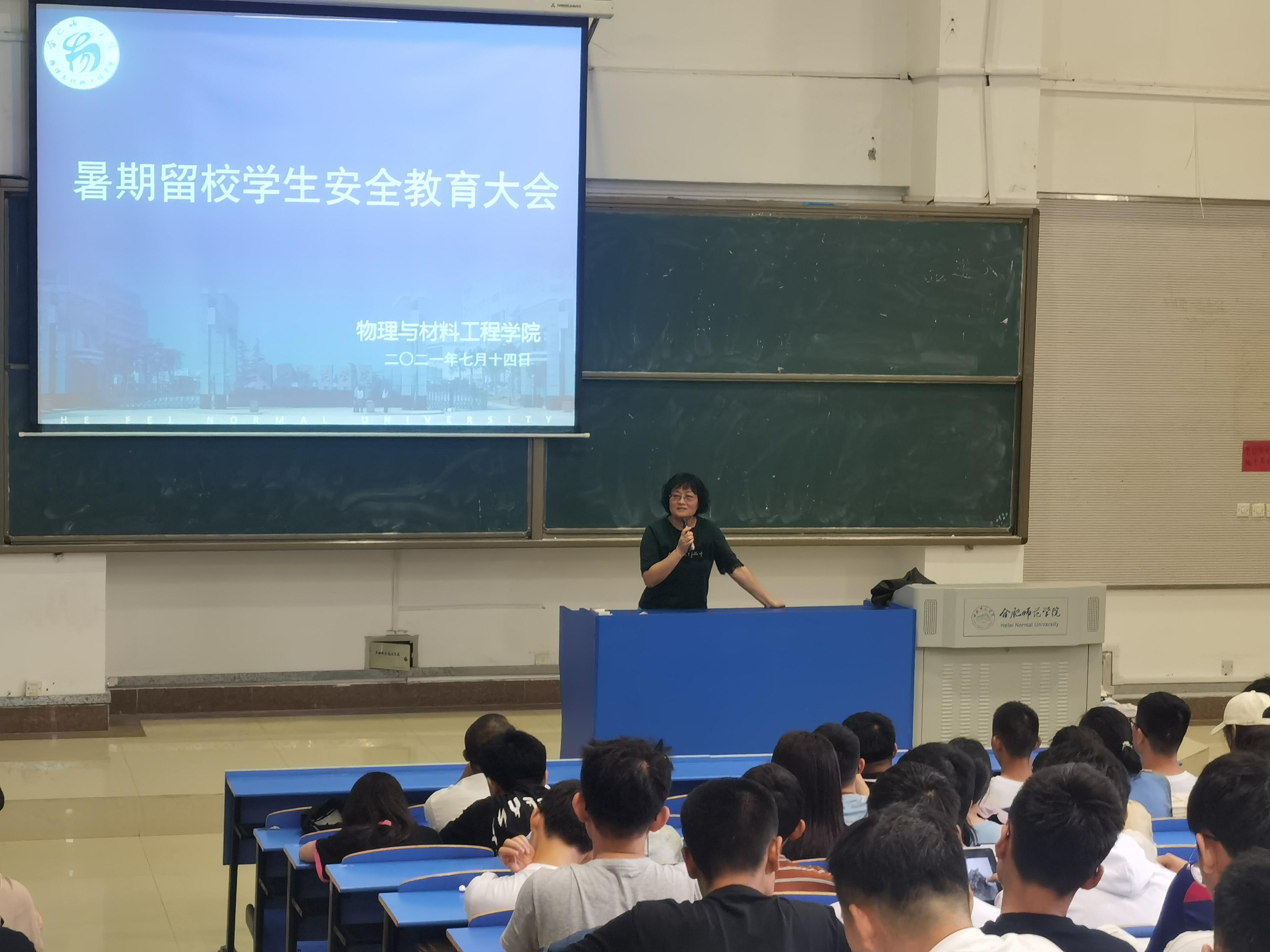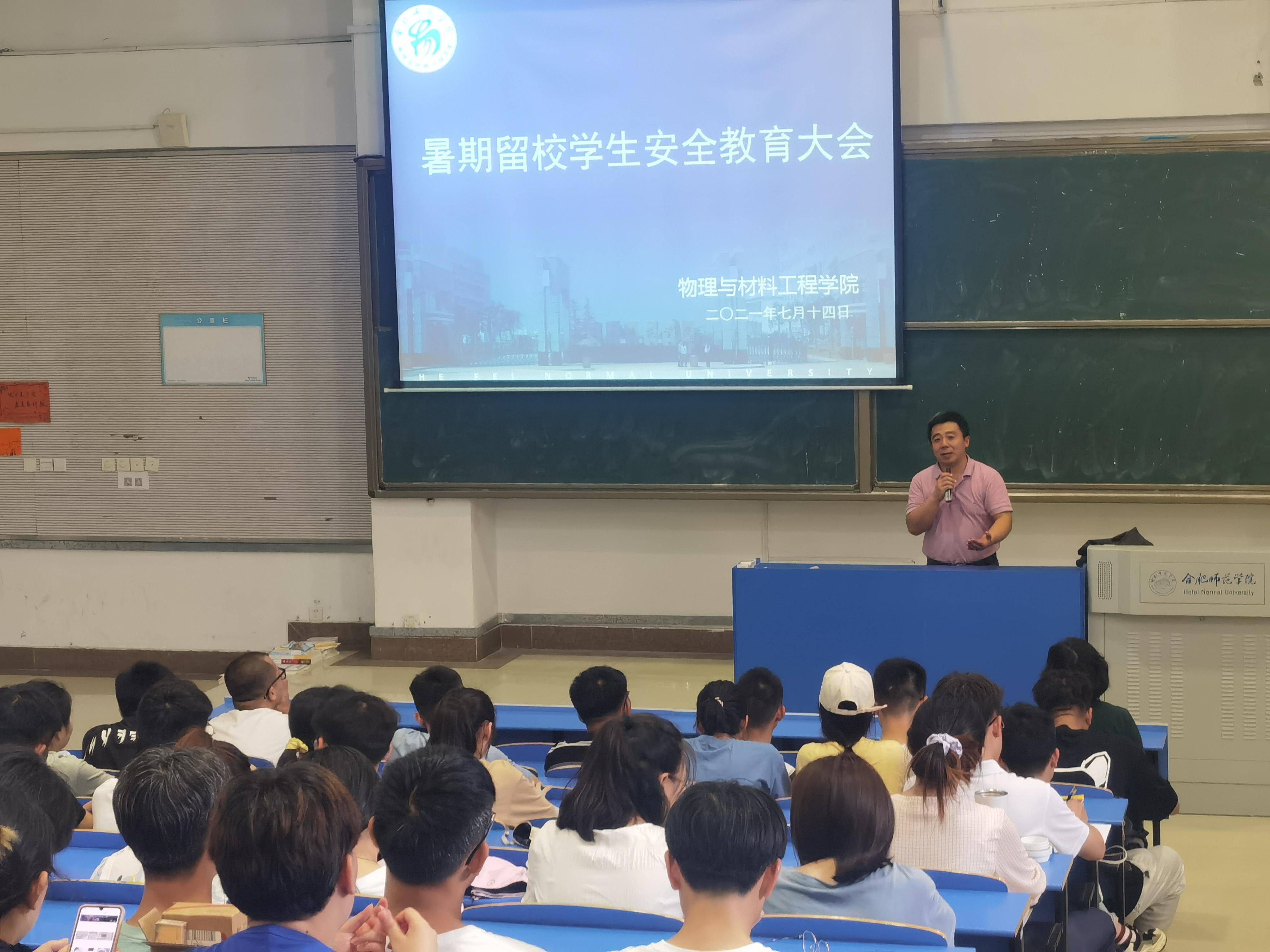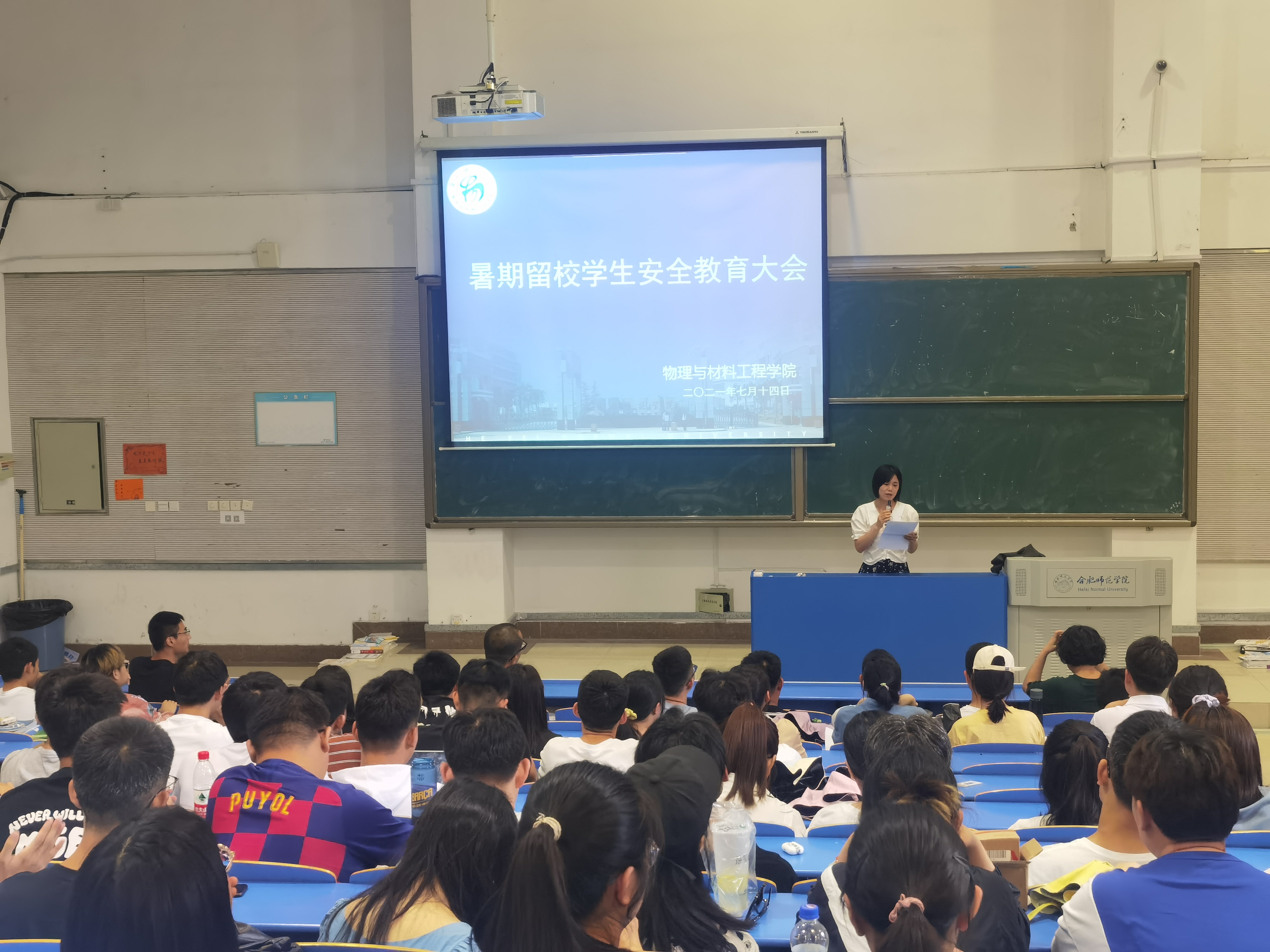 为落实学校关于加强暑期留校学生安全工作的要求,tyc5997太阳集团于7月14日下午在逸夫楼西阶2教室召开暑假留校学生安全教育大会。会议由辅导员吴梦云主持,学院党委书记唐洁、党委副书记吴震、辅导员赵厚德及全体留校学生参加会议。