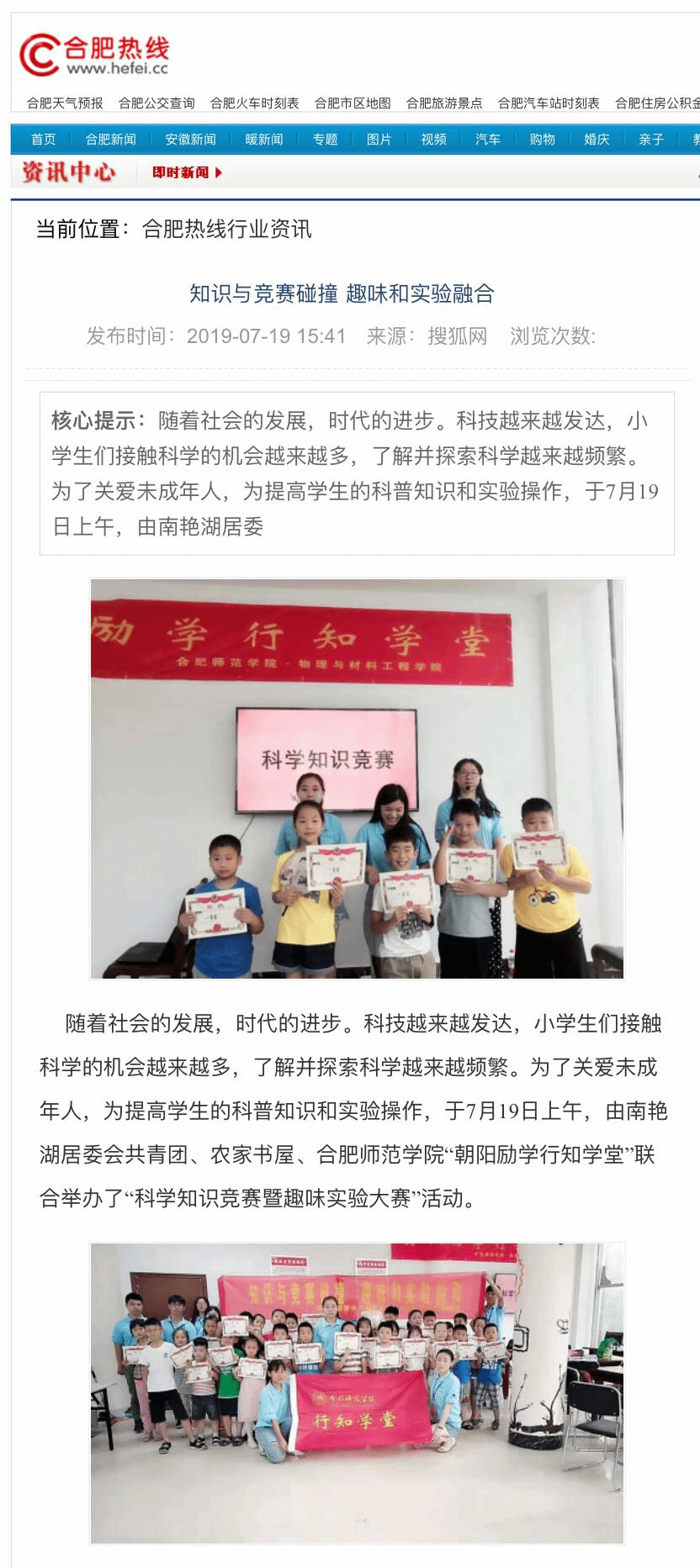 7月19日,搜狐网、合肥热线对我院tyc5997太阳集团南艳湖居委会“朝阳励学行知学堂”进行了报道。(tyc5997太阳集团)