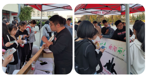 活动开展前期,物材学院学生会各部门联合制作了微视频,通过学院官Q进行宣传播放,并在竹园广场处摆放活动展板,吸引了众多同学前来参与。