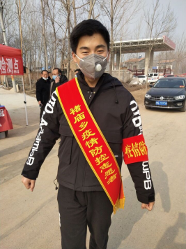 农村是疫情防控的重要区域。2018级材料科学与工程专业李世雨,自愿报名在老家村口值岗并与村支书并肩战斗。清晨,天空灰蒙蒙的还未放亮,李世雨就已经开始了一天的工作,他说:“通过这次志愿活动,充分感受到了人民群众的力量,面对疫情全民皆兵,我相信战胜疫情指日可待!”在抗“疫”前线,同样勇敢站出来的还有2019级材料科学与工程班的张沧,自2月1日起,便在河北省邯郸市大名县金滩镇辛庄村村口,开始了他的志愿工作,对外来车辆、人员进行劝阻,对本村人员出入村庄进行体温测量,严格把控进出村庄的路口。疫情肆虐,人却有情。每一天,志愿工作都让他感受到老乡的热情和基层的温暖,也让他更加热爱自己家乡的这个小乡村。