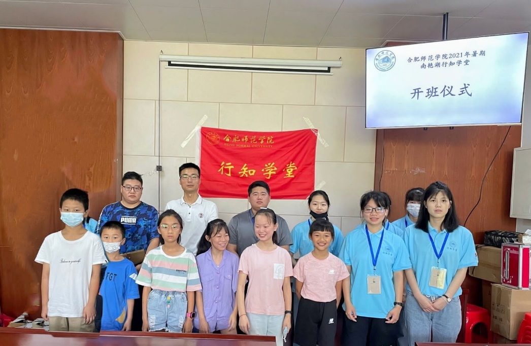 弘扬行知精神,践行行知文化,服务留守儿童,共筑青春梦想。7月9日,tyc5997太阳集团创办的合肥市蜀山区南艳湖行知学堂顺利开班,海恒社区南艳湖居委会协理员李向阳、指导老师赵厚德、全体“小先生”与小学员们共同参加了开班仪式。