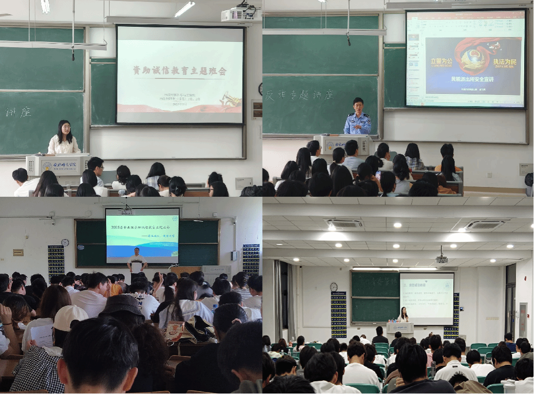 召开主题班会和反诈专题讲座。5月16日-30日,学院各年级专兼职辅导员深入班级召开资助诚信教育主题班会,结合《人行个人征信知识介绍》、资助政策等宣讲材料进行诚信教育、感恩教育、预防诈骗教育、远离不良贷套路贷警示教育。班会期间,邀请属地派出所做反诈专题讲座,围绕“电信网络诈骗的方式”、“如何预防电信网络诈骗”以及“遭遇电信诈骗的自救方法”三个部分进行专业讲解。通过真实案例和案件数据让同学们全面了解常见电信诈骗的机理和类型,对资助诚信教育和防范电信诈骗有了更深刻的理解。