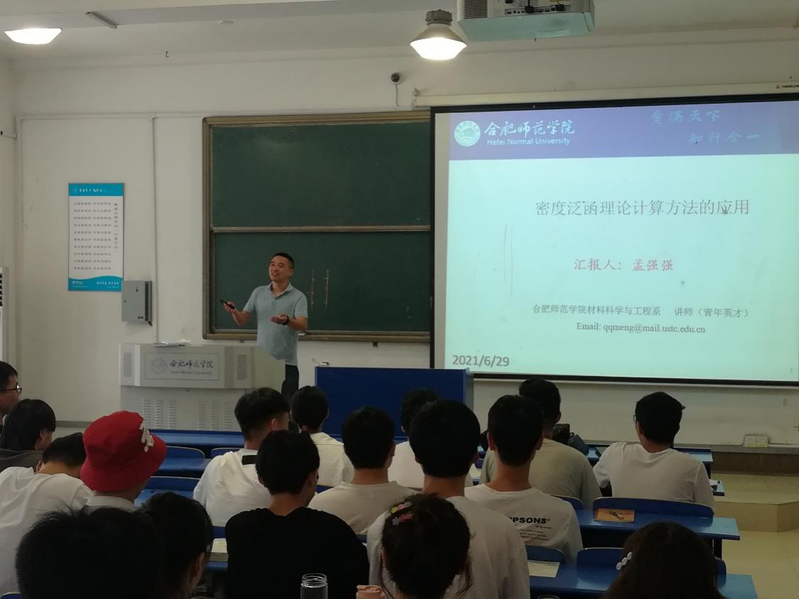 孟强强博士则从“密度泛函理论计算方法的应用”角度,介绍了与密度泛函理论相关的三个理论研究方向,并结合自己的科研经历重点讲解了密度泛函理论在纳米材料性质和应用领域的重要性,分别从密度泛函理论在二氧化钛纳米管的性质与应用,金属氧化物催化材料电化学响应和光电性质以及二维纳米材料和离子电池电极材料性质等三个方面阐述其机理和应用研究。