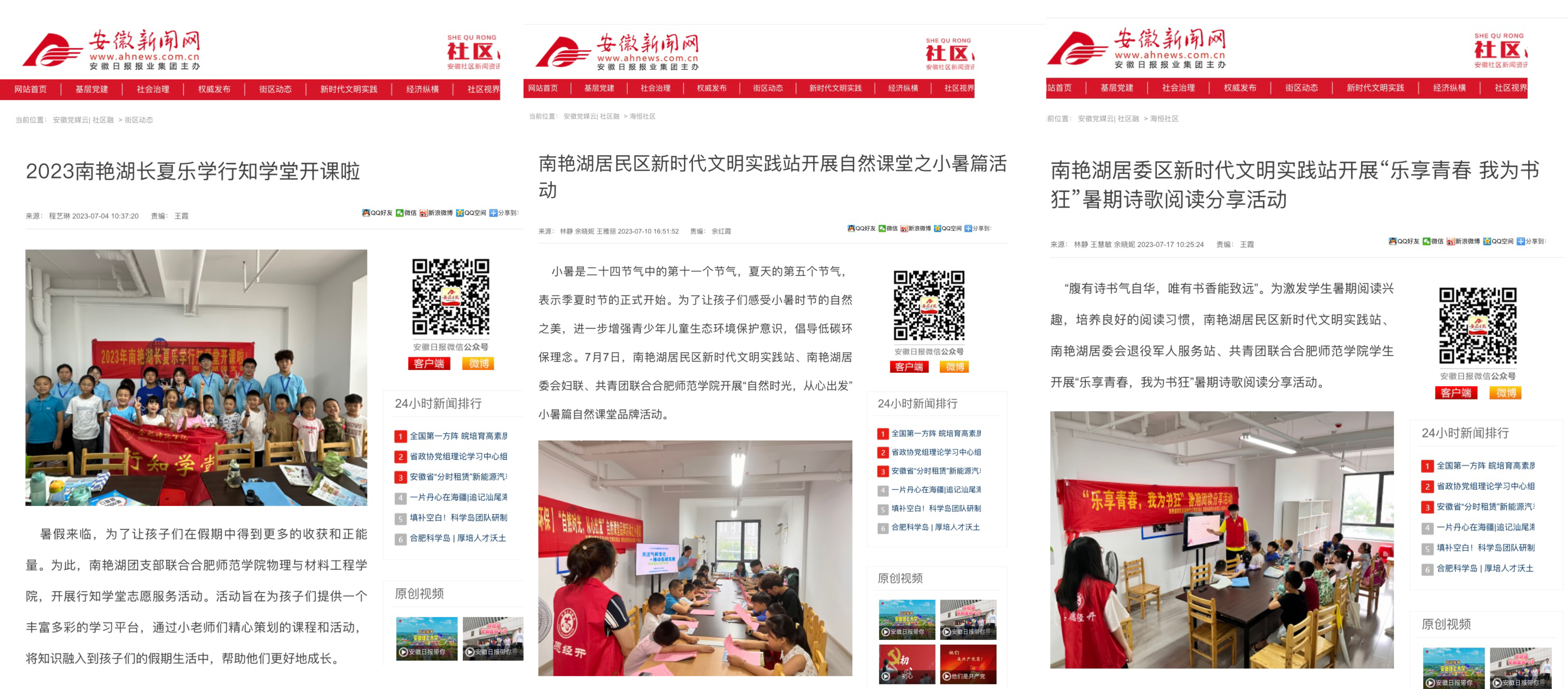 7月4日、10日、17日,《安徽新闻网》对学堂进行多次报道。(tyc5997太阳集团:吴梦云)