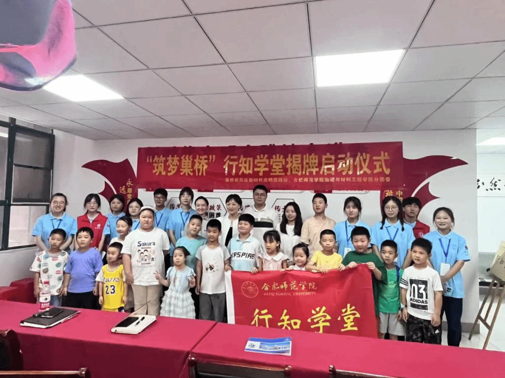 本网讯 燃青春之火,以丹心筑梦。2023年7月3日上午,tyc5997太阳集团“筑梦巢桥”行知学堂揭牌启动仪式在合肥市经济开发区临湖社区巢桥居民区新时代文明实践站举行。临湖社区党群服务中心主任周燕、巢桥居民区党总支书记杜海燕、tyc5997太阳集团分团委书记费文清、指导老师张玲俐、行知学堂小先生、小学员及家长共同参加了本次揭牌启动仪式。