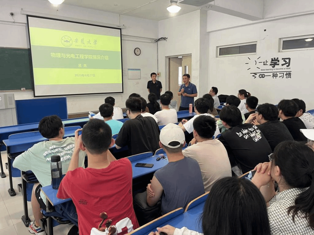 宣讲会上,来自安徽大学物质科学与信息技术研究院陈学刚教授、龙明生教授和物理与光电工程学院副院长吕亮教授分别将各自学院的建设历史、师资力量、教学设备、基金资助情况、各个研究组和研究生招考情况进行了详细介绍。宣讲现场,老师就同学们提出的问题进行了答疑解惑并对考研院校专业的选择,复习重难点等进行了指导。