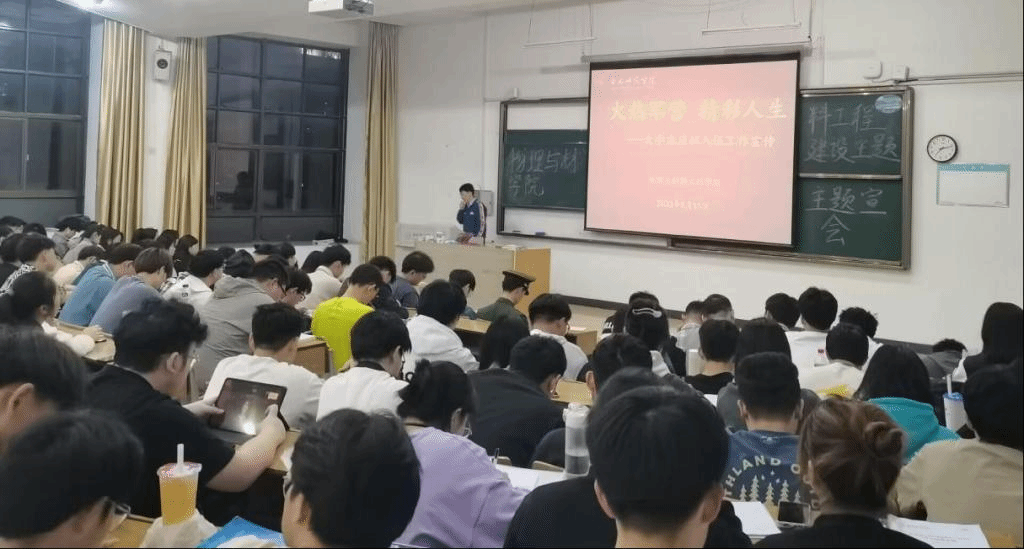 宣讲会上,韩翔向同学们详细介绍了大学生应征入伍的相关政策,号召物材青年学子把爱国之心化为报国之行,将青春之芳华融入钢铁长城建设的伟大事业中去。