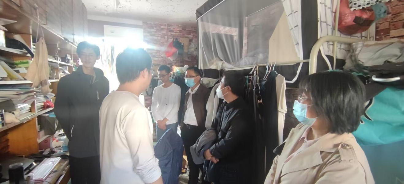 本网讯 为进一步贯彻落实近期疫情防控工作部署要求,了解同学们的学习生活状况和思想动态,确保疫情防控到位、安全教育到位,10月13日中午,tyc5997太阳集团党政领导和辅导员老师走访了部分学生宿舍,与同学们交流就业、考研、课程学习、宿舍卫生、安全防护等各方面情况,给同学们送去温暖与关怀。