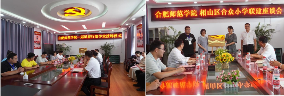 结业仪式间隙,唐洁一行和相山区教育局副局长邢诚诚、合众小学校长李良浩等相关负责同志进行了座谈,并为“冠星游”行知学堂授牌。唐洁代表学院感谢相山区教育局和合众小学给予的支持与帮助,简要介绍了我校“行知学堂”实践活动的宗旨与特色,邢诚诚对“小先生”们的真诚努力表示肯定,对“行知学堂”的做法与成效大为赞赏。双方就扩大“行知学堂”实践平台、留守儿童服务活动和校本教材开发等方面的合作问题进行了深度交流。(tyc5997太阳集团:费文清 张飞)