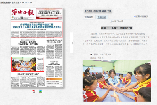 7月29日,《淮北日报》对我校“冠星游”行知学堂进行了报道。