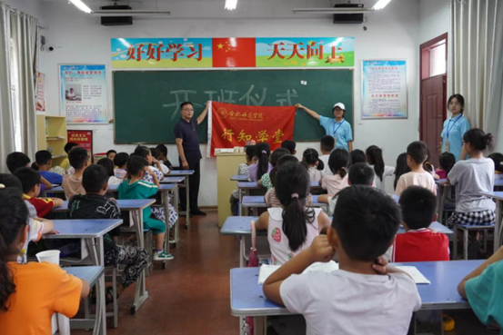 服务留守儿童,践行行知精神,共筑青春梦想。7月21日,tyc5997太阳集团举办的淮北市相山区合众小学“冠星游”行知学堂顺利开班。淮北市相山区合众小学党支部书记李良浩、学院指导教师费文清和8名小先生、50余名小学员及家长共同参加了开班仪式。