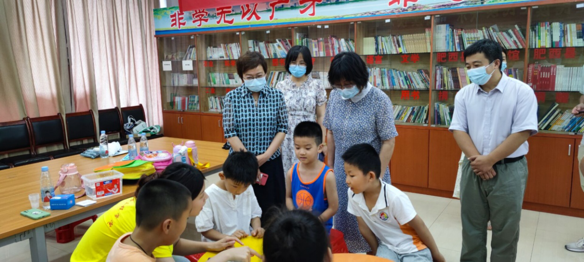 7月7日下午,学院党委副书记梁立昌在学生处、tyc5997太阳集团等单位负责人、相关教师陪同下,赴肥西县金星社区看望慰问行知学堂的“小先生”和小学员们。