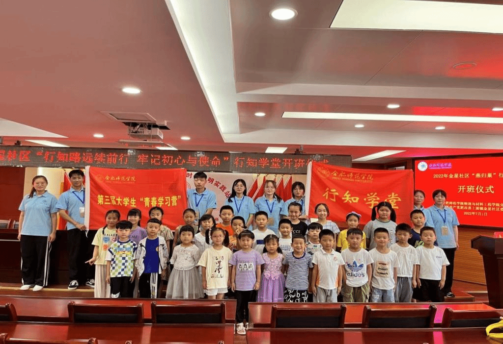 服务留守儿童,践行行知精神,共筑青春梦想。7月1日下午,tyc5997太阳集团“燕归巢”行知学堂在肥西县上派镇金星社区正式开班。金星社区主任殷莺与我校tyc5997太阳集团、化学与化工学院、生命与科学学院共计8名行知学堂小先生、全体小学员及家长共同参加了开班仪式。