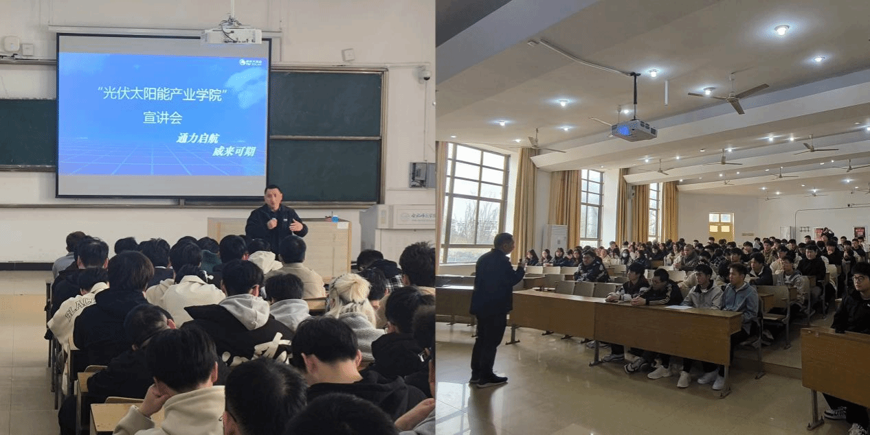 通威太阳能人力资源部李存东经理向2021级学生详细介绍了通威太阳能公司的产业布局、市场发展、制度环境和人才培养等相关情况。同时重点围绕培养目标、课程安排和实习就业等方面解答“光伏太阳能”产业学院联合培养的相关内容。