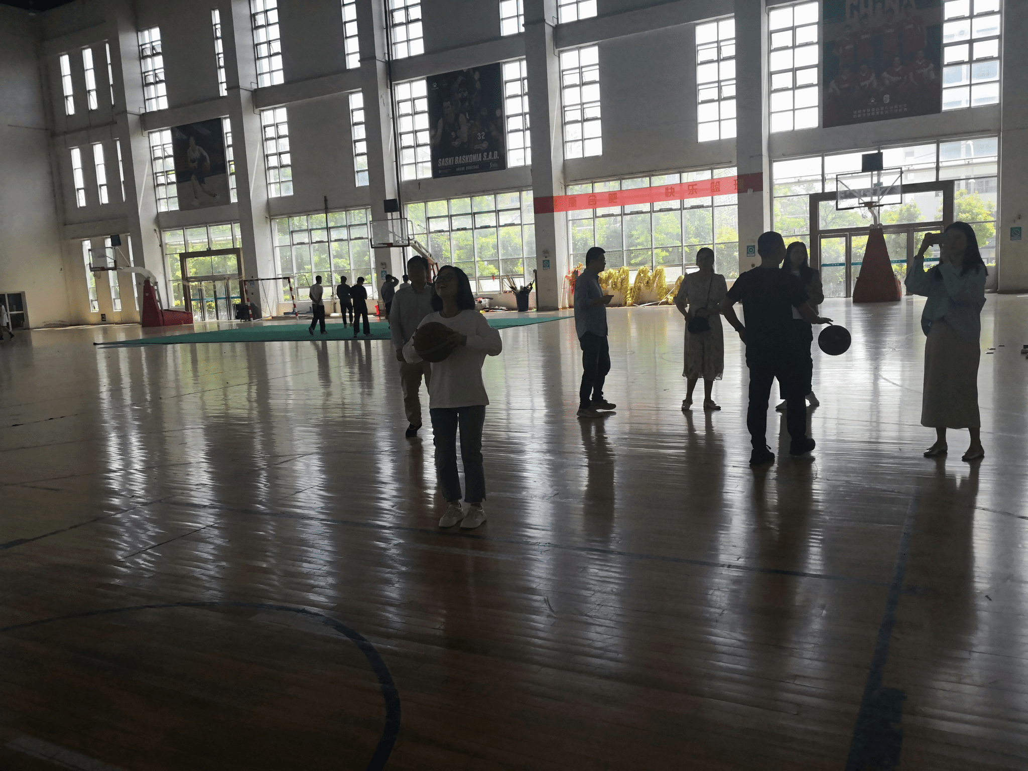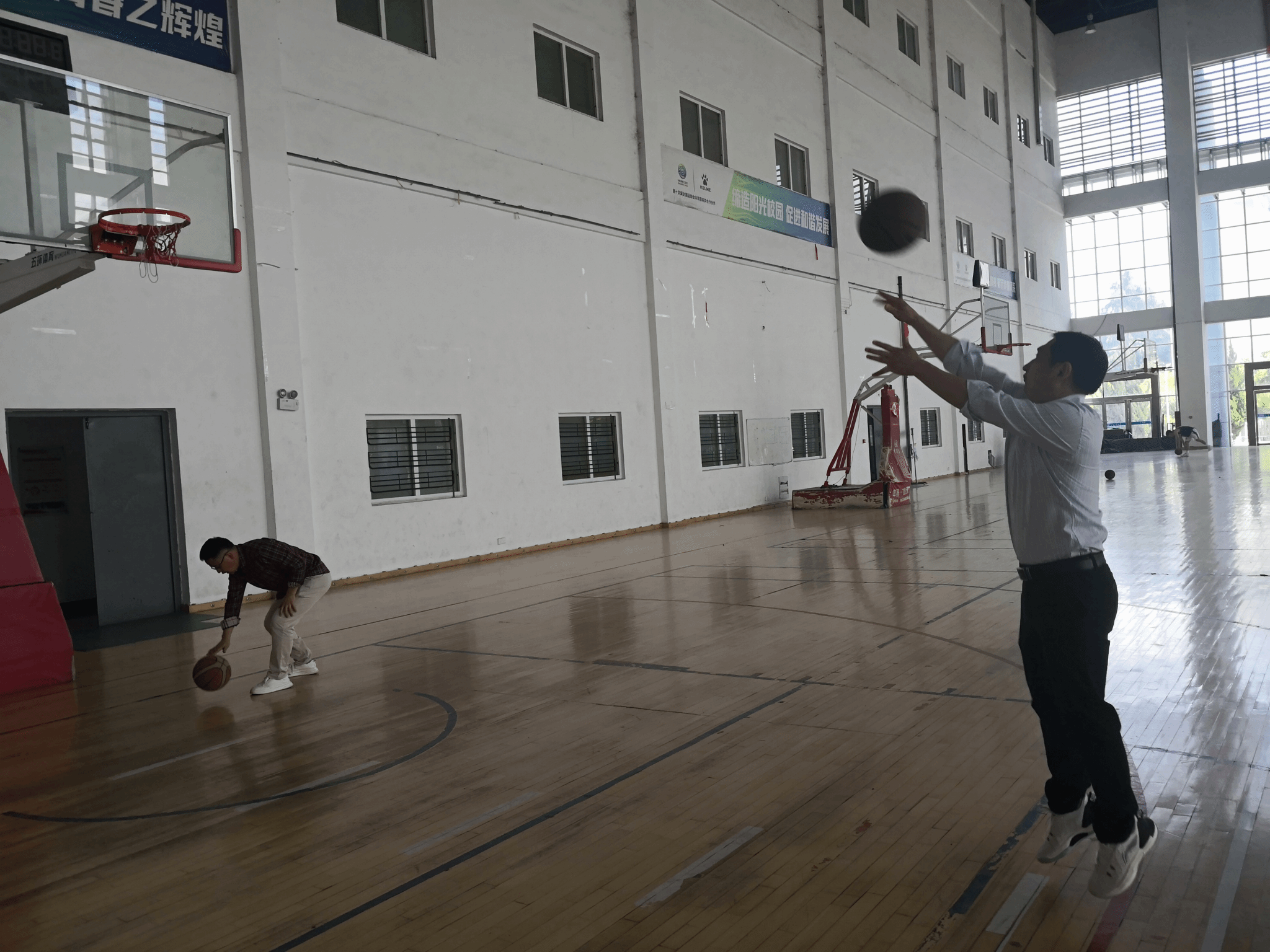 赛场上,每一位参赛老师都精神抖擞,屏息凝神,认真把握每次投篮机会。赛场外,大家相互喝彩,鼓励,交流投篮经验,篮球场上洋溢着浓浓的暖意。