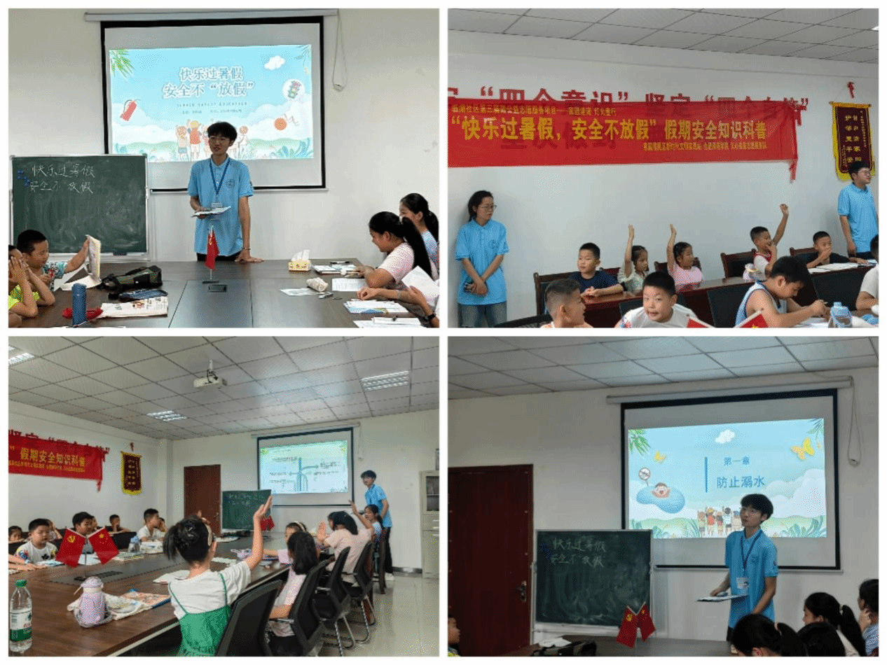 开班仪式上,小先生向学员及家长介绍了本次行知学堂创办的初衷和即将开展的特色活动,与学员家长们完成了安全承诺协议书的签订。开班仪式结束后,第一课围绕“快乐过暑假,安全不放假”主题,小先生刘钧涛从多个维度生动形象地向小学员们讲述了暑期安全的重要性。