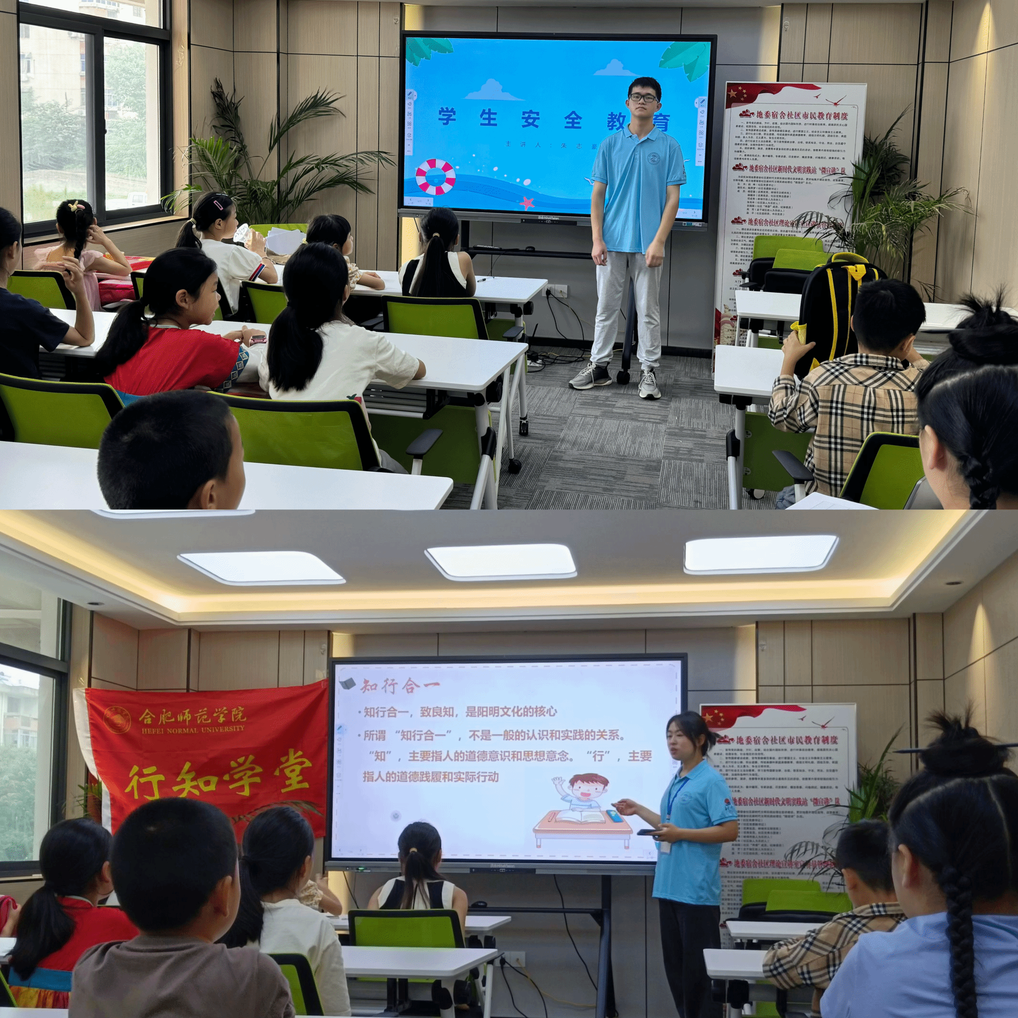 开班仪式结束后,小先生朱志豪、沈鑫分别进行了安全教育和行知文化介绍课程。
