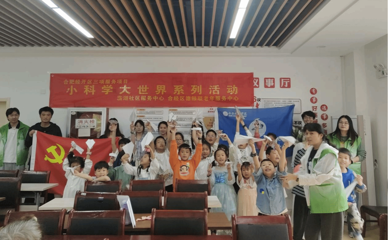 4月19日下午,科普服务队与临湖社区服务中心和经开区德颐顺老年服务中心合作,开展“飞行的秘密”主题课堂。志愿者通过小实验和图示讲解帮助小朋友们了解飞机的基本构造,探索航空的奥妙。