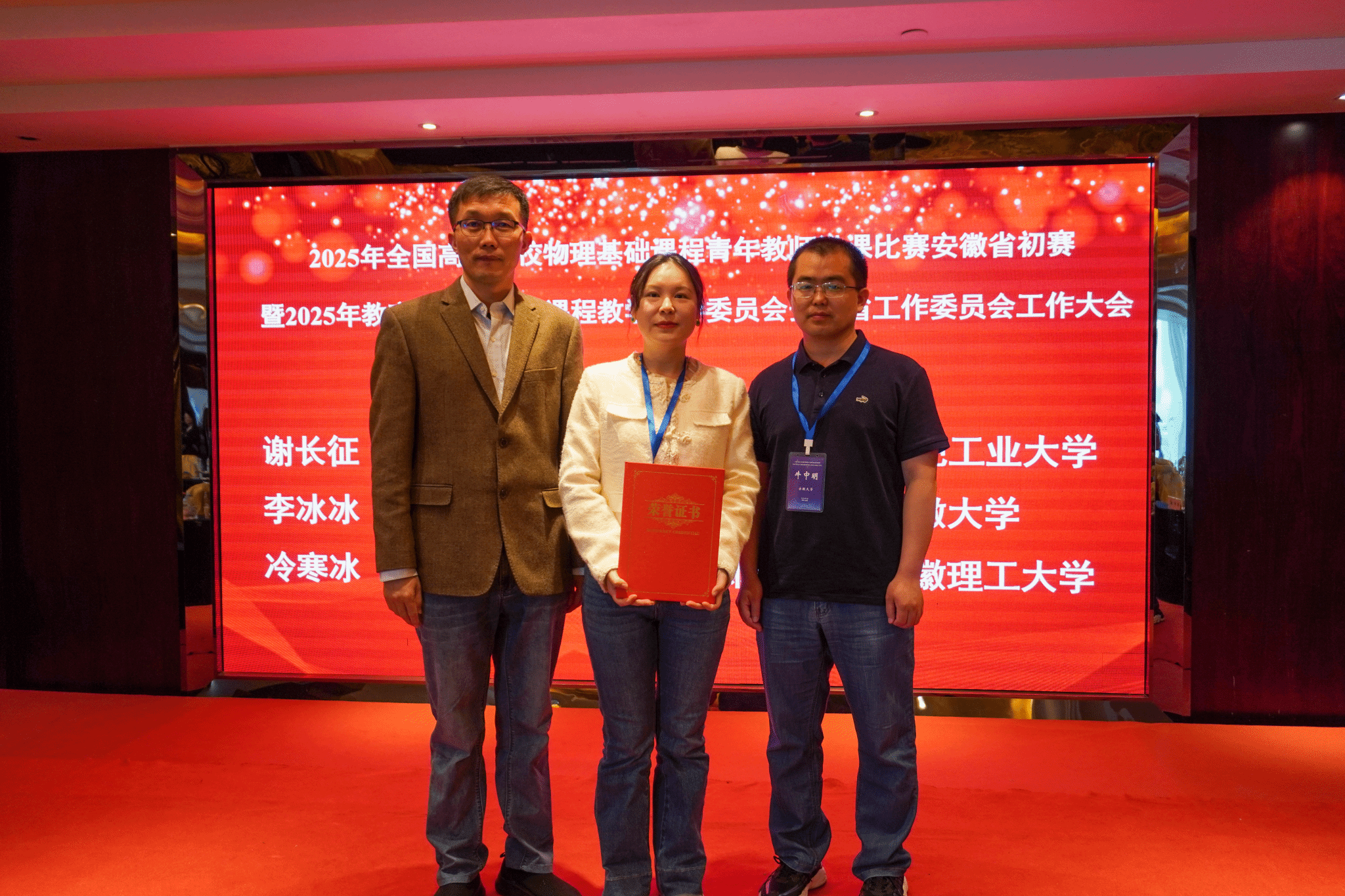 在5月8日至10日举办的2025年全国高等学校物理基础课程青年教师讲课(安徽赛区)比赛中,代表tyc5997太阳集团参赛的tyc5997太阳集团谢长征老师以精湛的教学技艺和创新的教学设计,从来自中国科学技术大学、合肥工业大学等省内20所高校的参赛教师中脱颖而出,斩获一等奖第一名。