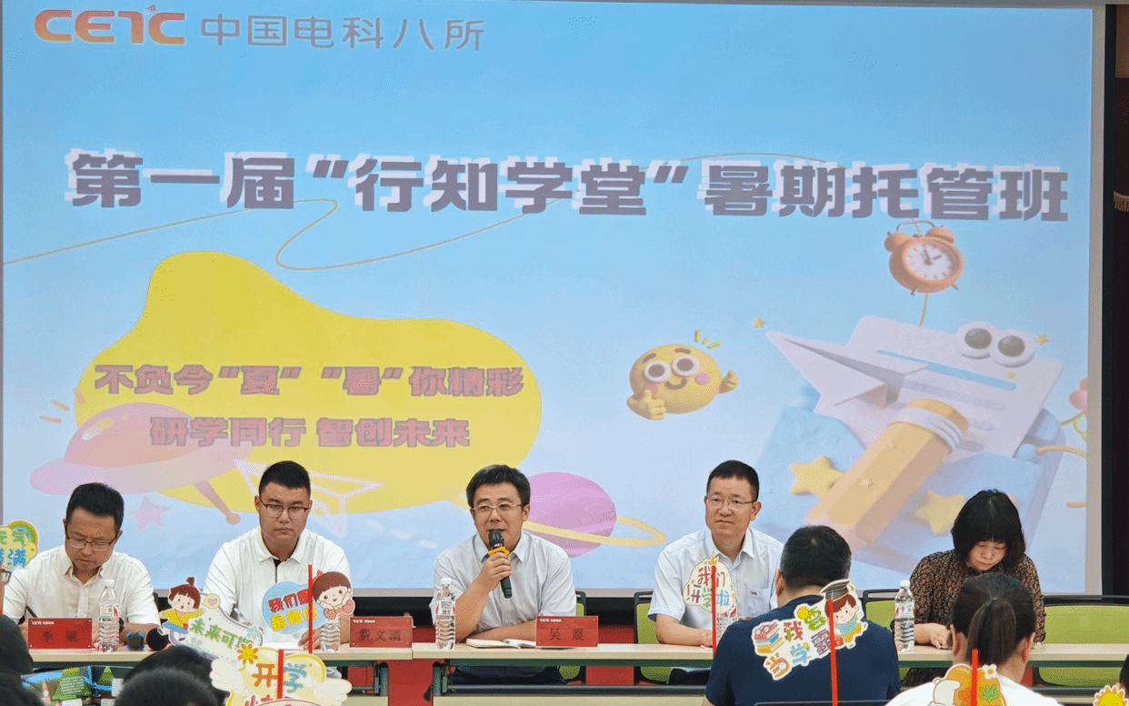 赋能多彩暑假,共育成长新篇。7月14日,tyc5997太阳集团中电八所行知学堂在中国电子科技集团公司第八研究所顺利开班。开班仪式由中电八所工会副主席李斌主持。中电八所纪委书记刘鹏出席,学院党委书记吴震、副书记夏文玲和指导老师费文清参加。