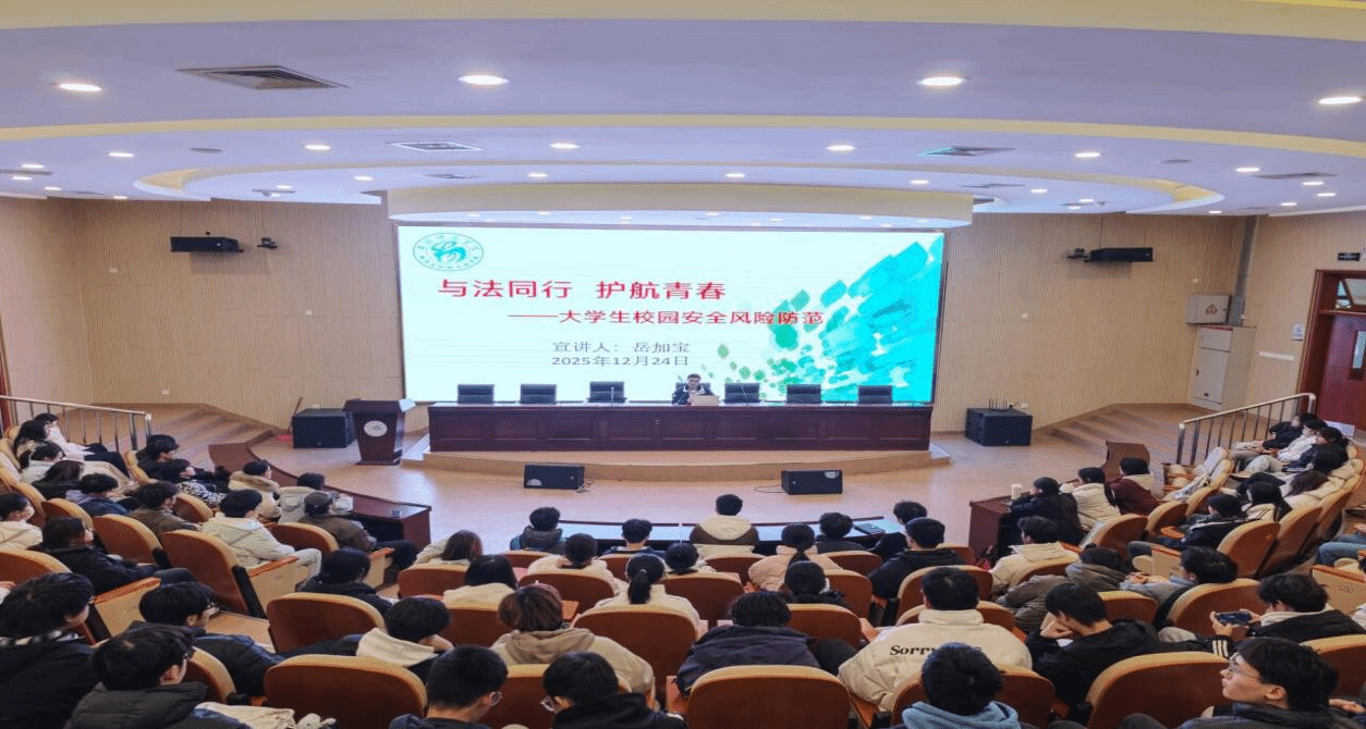 为增强学生法治观念与安全防范意识,筑牢校园安全防护网,12月24日,tyc5997太阳集团在学术报告厅举办“与法同行 护航青春——大学生校园安全防范”主题普法宣讲活动。本次活动由学院特邀具有丰富法律知识与实务经验的辅导员岳加宝老师担任主讲,滨湖校区各年级各班学生代表参加。