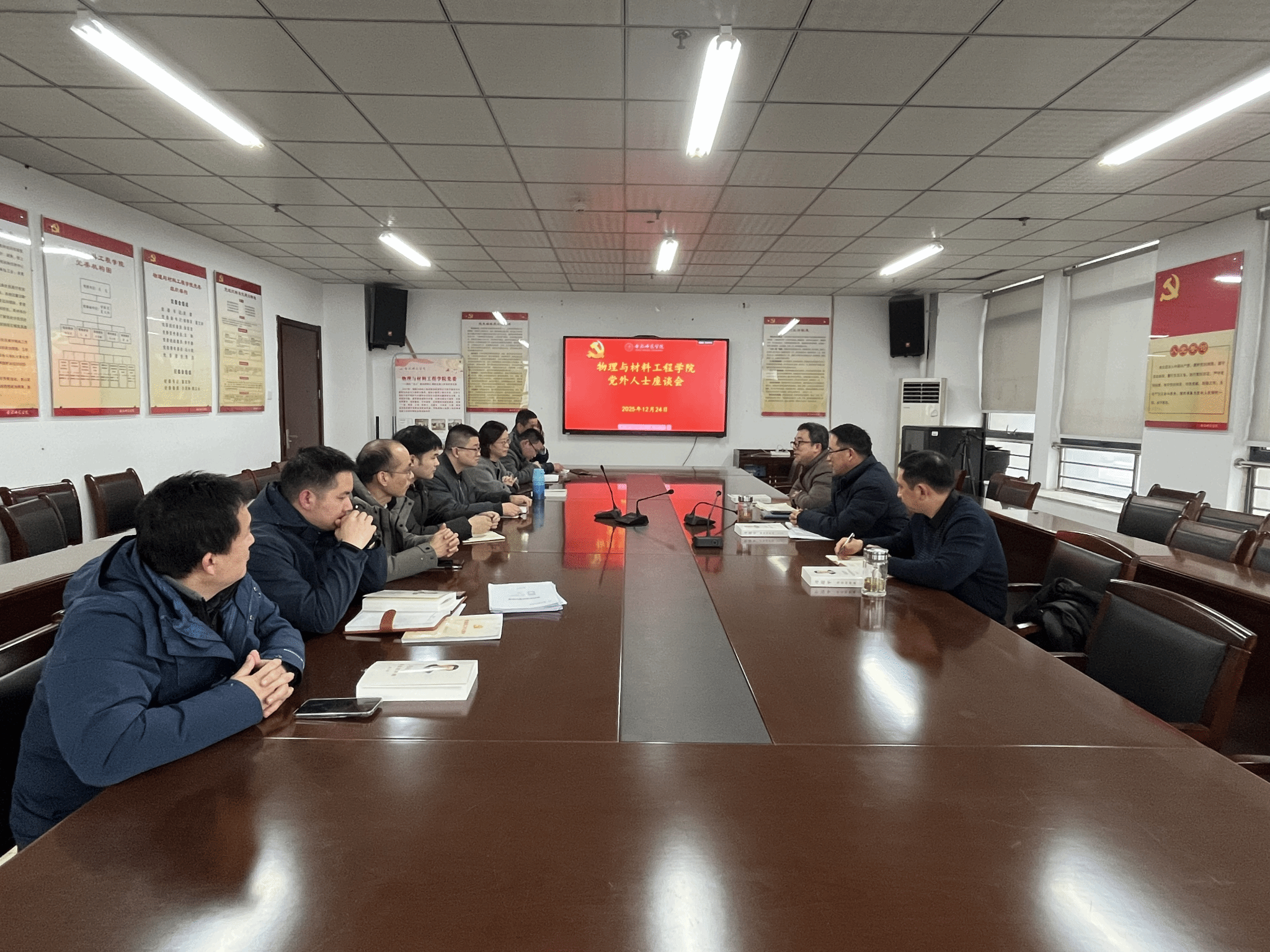 为进一步加强统一战线工作,广泛听取党外人士对学院事业发展的意见建议,凝聚共识、汇聚力量,共同推进学院各项事业高质量发展,2025年12月24日下午,tyc5997太阳集团在行知楼1202会议室召开党外人士座谈会。学院各民主党派成员、群众等党外人士应邀参加座谈。会议由学院党委书记吴震主持。