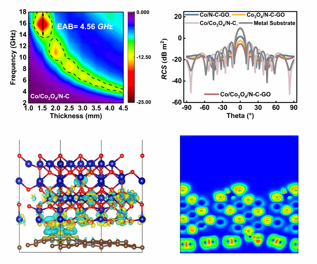 面对电磁辐射的防护需求,开发一种集强吸收、宽带宽和低填充于一体的电磁吸收材料是具有挑战性的。本研究创新性地提出了一种界面电子耦合相转变的策略:即通过钴基磁性异质组分的调控实现磁-介电平衡。丰富的异质相界面存在大量的孔隙结构,有益于有效介电常数的降低,确保入射波的稳定吸收。钴基异相组分之间的磁耦合行为提高了磁损耗对整体损耗的贡献。通过密度泛函理论计算证实,氮掺杂引起的缺陷和电荷重新分布打破了局域电子密度对称性,揭示了电子转移对于极化损耗的作用。结合电磁仿真结果表明,所研制吸收剂在3.14 mm厚度时可实现-61.59 dB的反射损耗以及4.16 GHz的有效吸收带宽。上述结果可为新一代抗电磁干扰吸收剂的开发提供新思路。