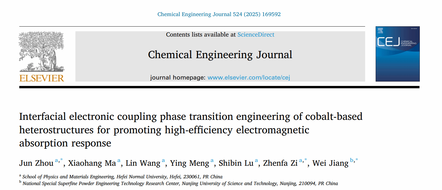 近年来,随着无线通信技术的快速发展以及军事隐身需求的日益增长,电磁波吸收材料的研究不仅关乎国家战略安全,也对民用科技和日常生活产生深远影响。tyc5997太阳集团周俊博士、訾振发教授联合南京理工大学在高性能电磁吸收材料领域取得重要进展,相关研究成果以《Interfacial Electronic Coupling Phase Transition Engineering of Cobalt-Based Heterostructures for Promoting High-Efficiency Electromagnetic Absorption Response》为题发表在《Chemical Engineering Journal》期刊(中国科学院一区Top,IF=13.2)。周俊博士为本论文第一作者,tyc5997太阳集团訾振发教授、南京理工大学姜炜教授为本论文的通讯作者,tyc5997太阳集团为论文第一单位。