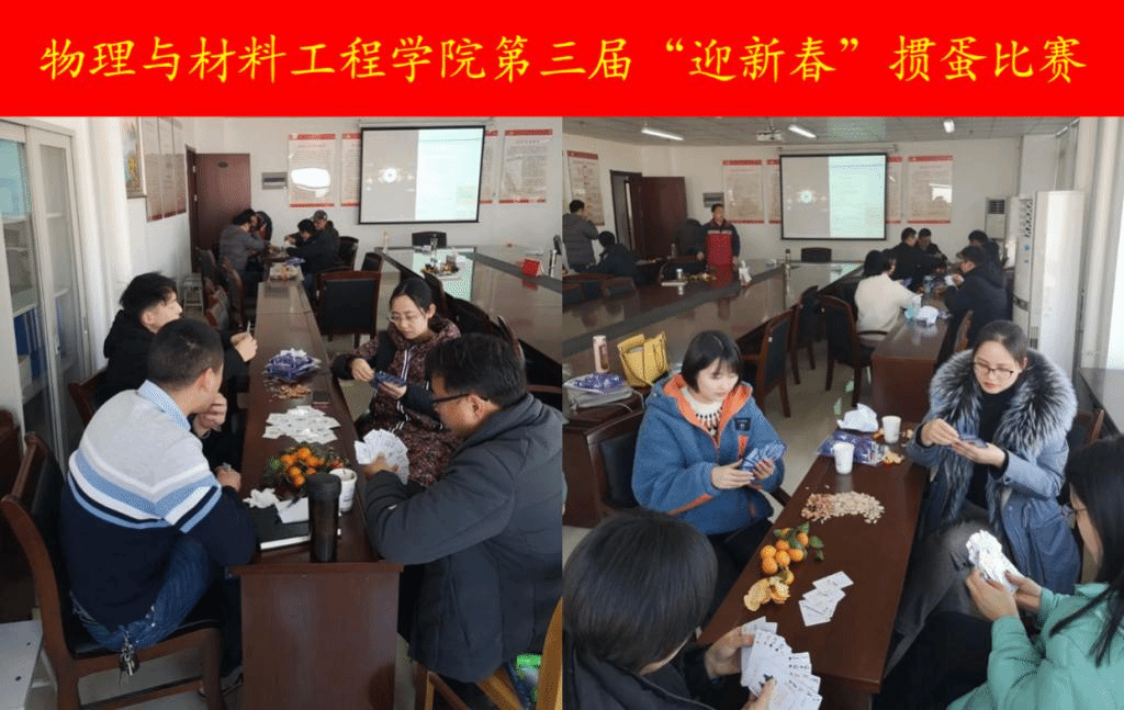 寒冬虽至,暖意融融,1月13日,tyc5997太阳集团迎来了第三届“迎新春”掼蛋比赛。本次活动由物材学院工会策划组织。经过赛前的积极动员,教职工的热情响应,共有30余位教职工报名参赛,工会也为参与者准备了精美礼品,为参赛选手及观赛团队准备了水果。