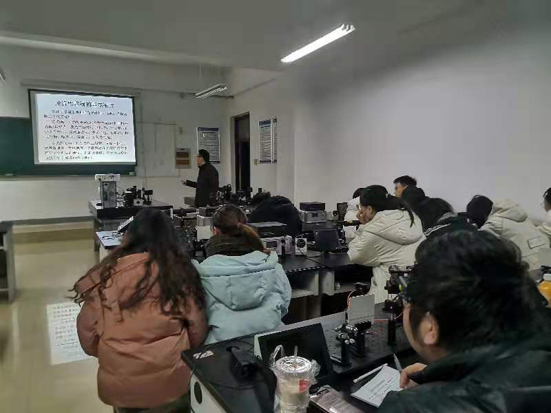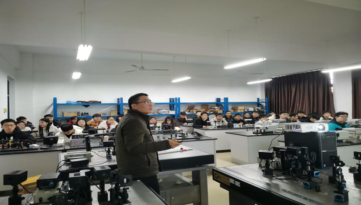 王燕飞老师依次从微纳光纤及其制造、微纳光纤传感原理以及微纳光纤传感在生化检测上的应用等3个方面做了详细的介绍,深入浅出地讲解了微纳光纤的研究前沿,开阔了学生的视野,给同学们留下了深刻印象。