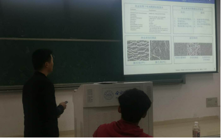 张老师介绍了锂离子电池的组成、储能机理以及应用领域,以及锂离子电池隔膜传输锂离子的机理的关键问题,解读了目前商业隔膜的优缺点以及几丁质纳米纤维基锂离子电池隔膜的发展及优势,并结合自身的科研经历,阐述了几丁质纳米纤维隔膜方面科研工作。张老师的讲座深入浅出地向同学们展示了科研的探索过程,激发了同学们的学习热情。