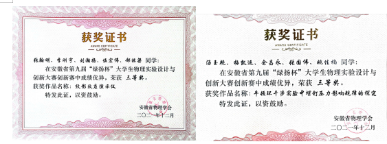 安徽省第九届大学生物理实验设计与创新大赛于2021年10月启动,共有20所高校参赛。此次竞赛因疫情原因,赛制有了新规定,只举办创新赛。面对新的比赛形势,我院参赛师生认真研究比赛规则,加班加点完善比赛作品。参赛的作品既有现代测量手段在物理实验中的应用,又有物理实验数据处理的优化;既有大学物理教学实验项目的验证,又有物理实验科技作品的设计制作。